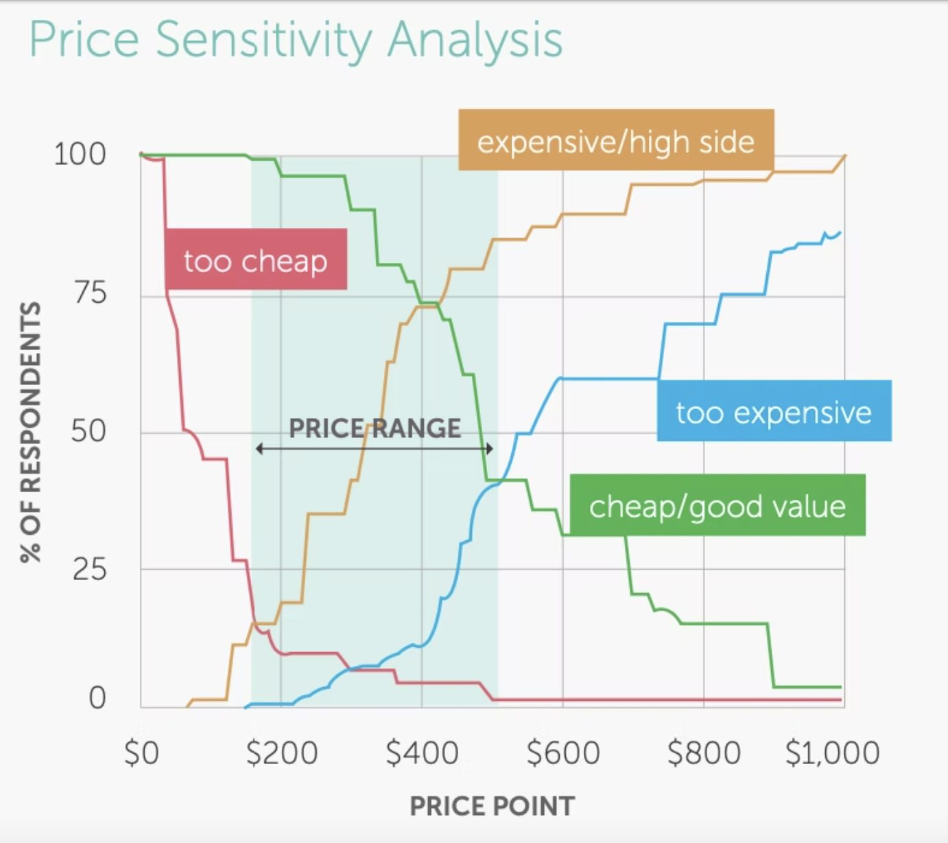 This is the understanding behind Van Westendorp’s Price Sensitivity Meter developed to determine the pricing landscape for a product. It relies on 4 questions:
